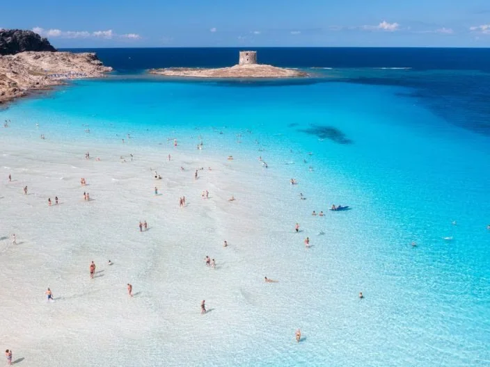 La Pelosa – One of the most famous beaches in Sardinia, featuring Caribbean-like turquoise waters, fine white sand, and a stunning Aragonese tower.